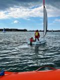 Lors de la séance suivante, toujours avec un beau soleil, nous avons appris à maîtriser des gestes plus techniques : virer, empanner, s'arrêter...